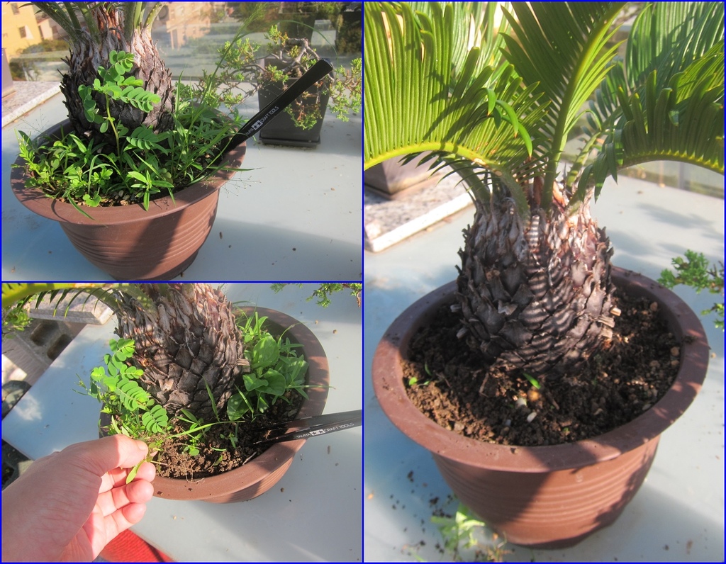 ▼幫蘇鐵盆栽除草