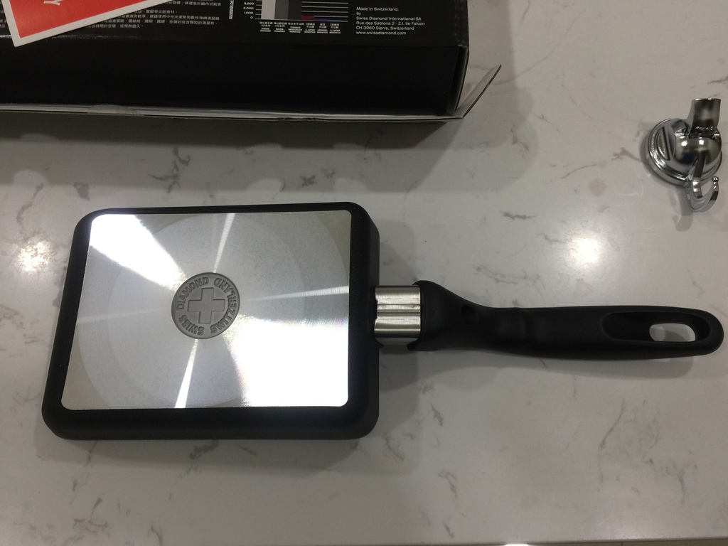 我們家廚房又有新鍋子了,加入的新力軍是一個"小煎鍋"~是康寧礸石鍋系列之一~瑞仕鑽石玉子燒鍋,這煎鍋很小,只適合煎蛋,我常在早上煎蛋使用,一次一顆蛋,還算方便,不沾鍋也好洗,過一陣子再來嘗試煎玉子燒,不知'道效果好不好。