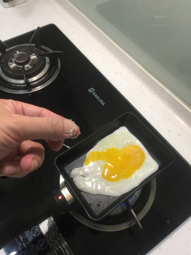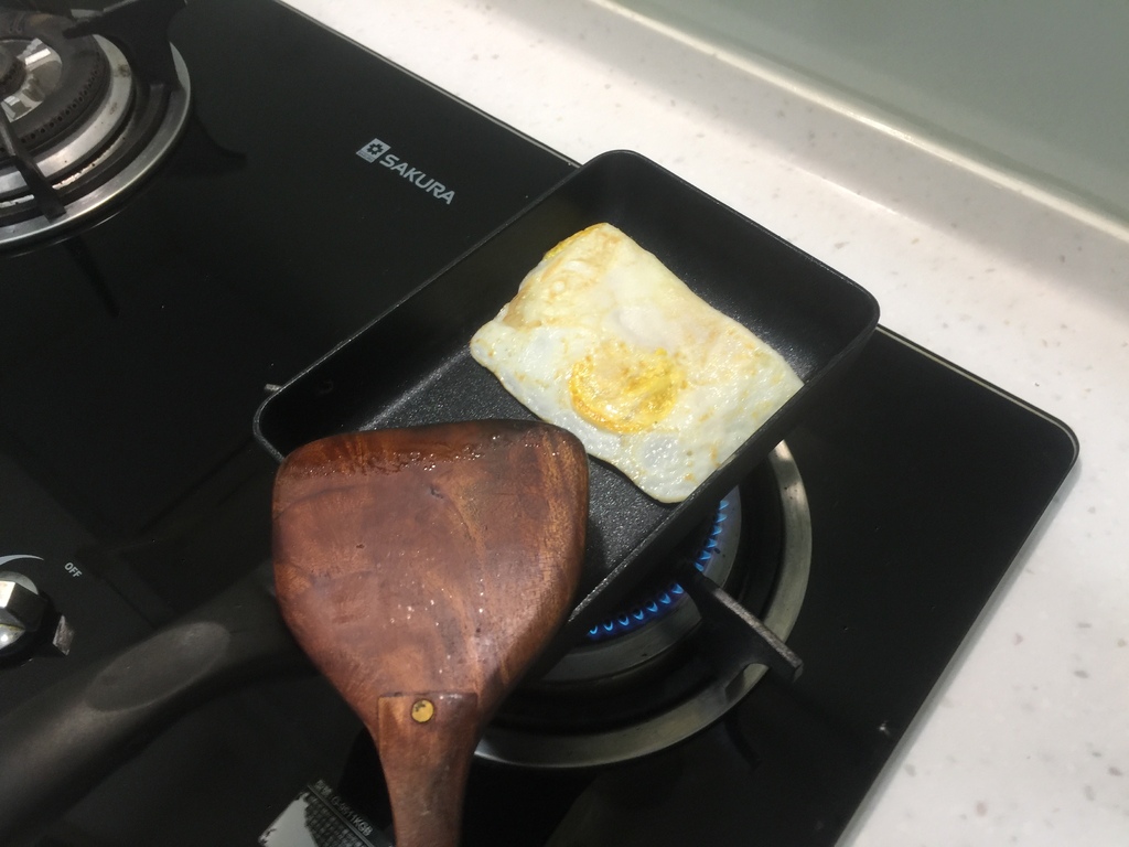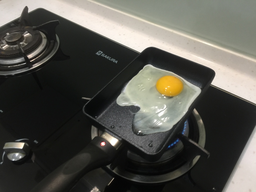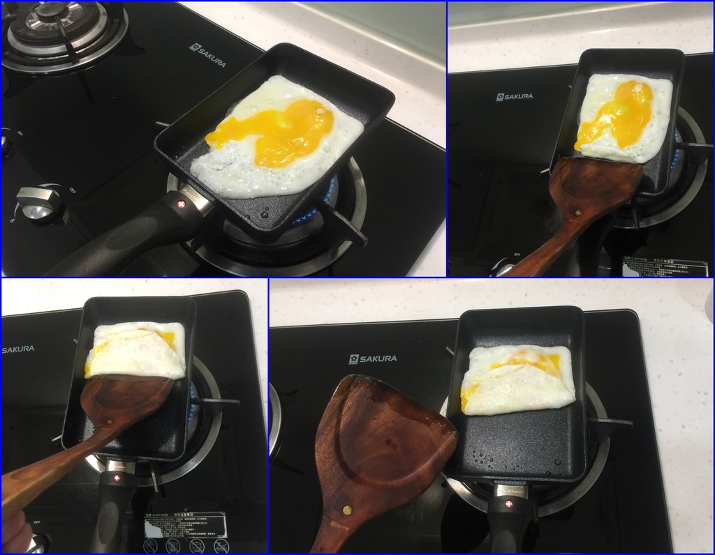 ▼煎蛋~使用小煎鍋(瑞仕鑽石玉子燒鍋)