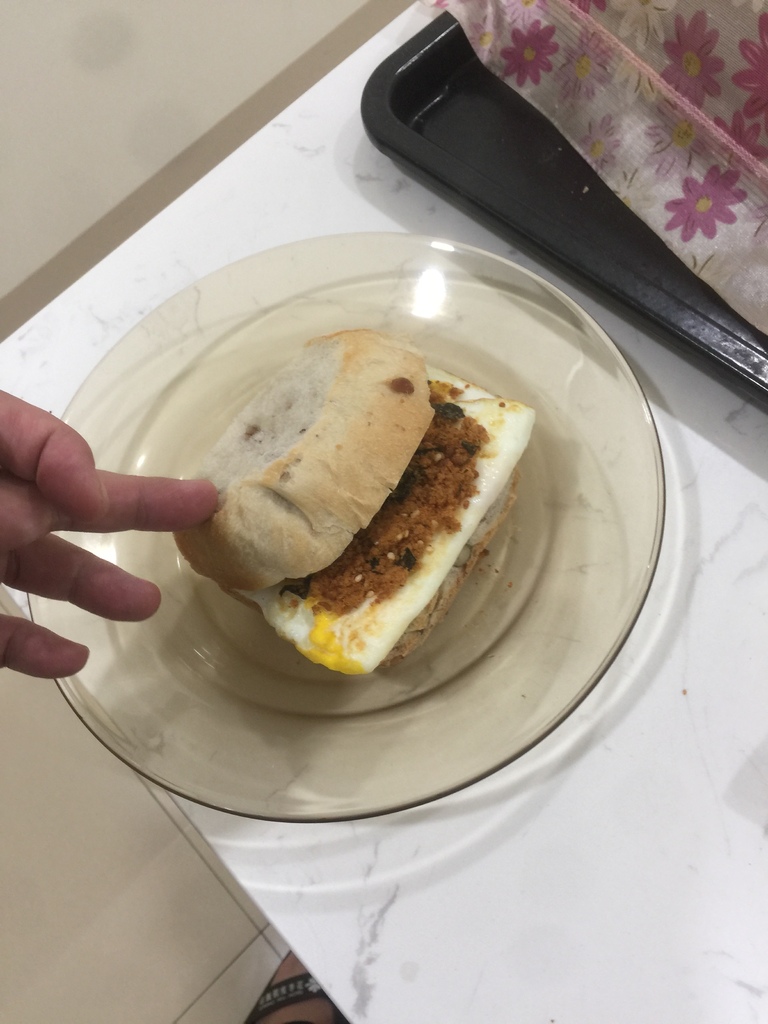 ▼早餐完成~土司夾蛋.起司及一些肉鬆
