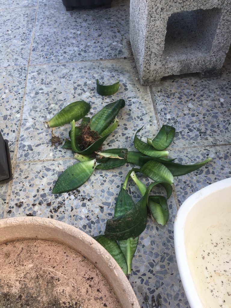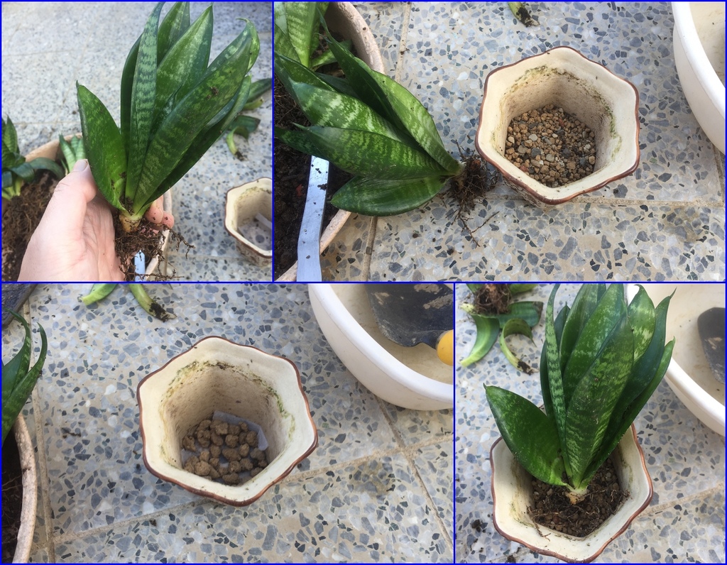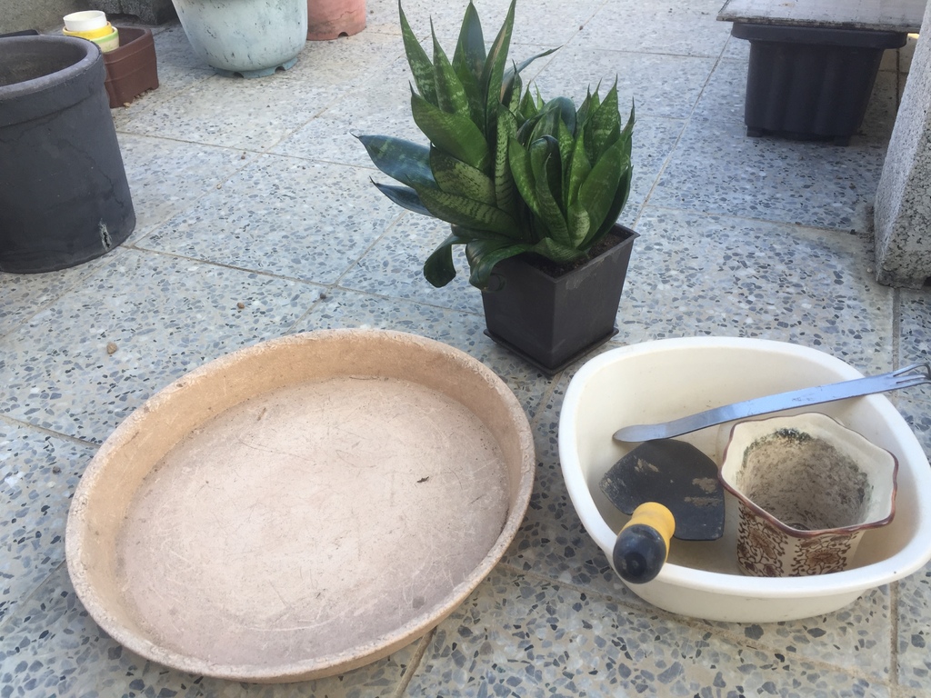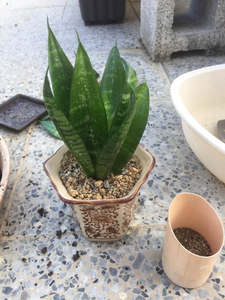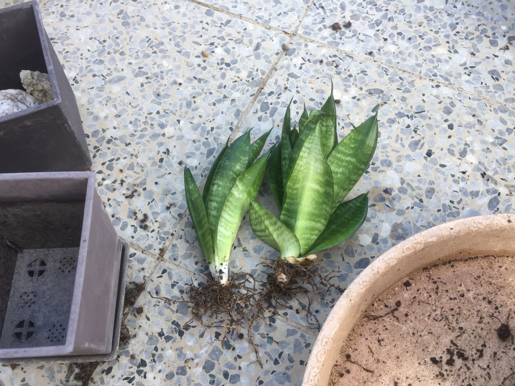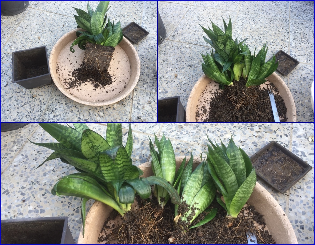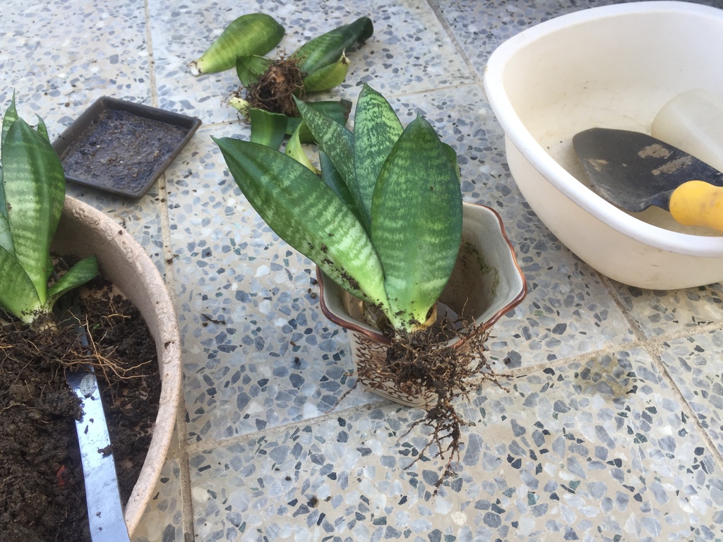 虎尾蘭在我家車庫種植了不少盆,一陣子就有爆盆的情形,也就是一盆中又長小棵的虎尾蘭,這回有朋友想要一棵,於是我就挑一盆,來移株~一盆變多盆。先把它取出,分株,再種植,一下子就~一盆變三盆,其中一盆送人,自己留2盆,以下是移盆及種植的過程。