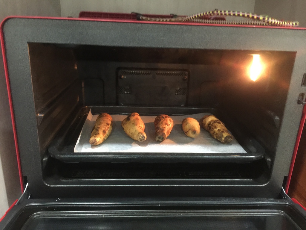 前一陣子,在生鮮超市看到"有機地瓜",於是買回來煮地瓜粥,也拿來烤地瓜,以前地瓜都是用電鍋蒸,蒸起來比較軟,也比較濕,這回嘗試用水波爐來烤地瓜,水波爐有自動行程,找了一下說明書,有編號,直接輸入編號,加點水,按開始就可以了,不用設定溫度及時間,自動烤地瓜,水波瀘是用蒸氣及烤箱方式,來烤地瓜,吃起來不用太乾,也不會太濕,剛剛好。