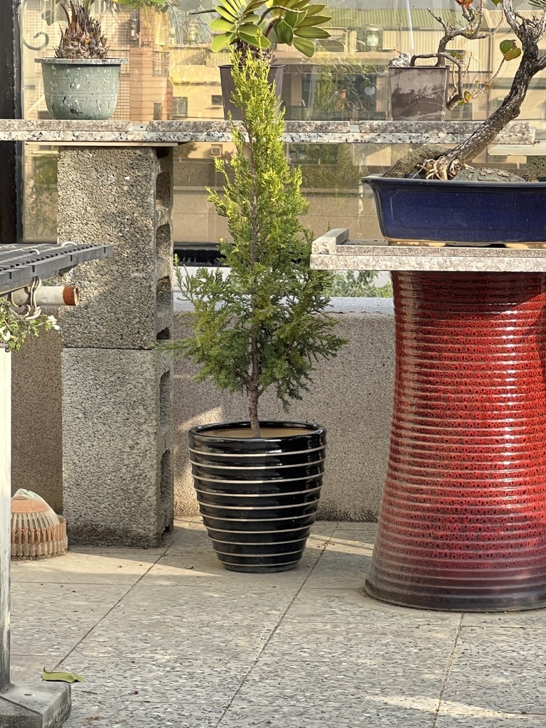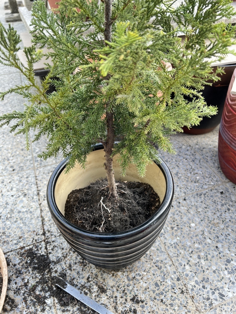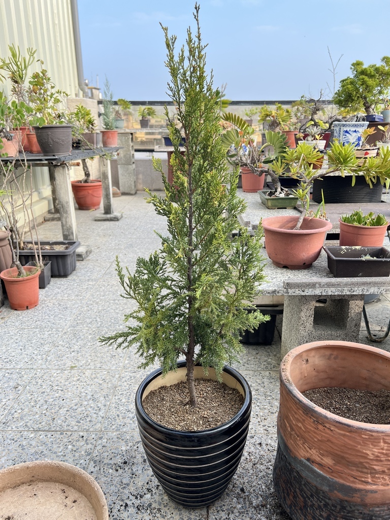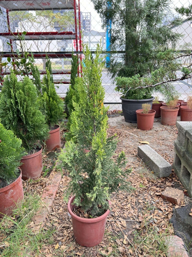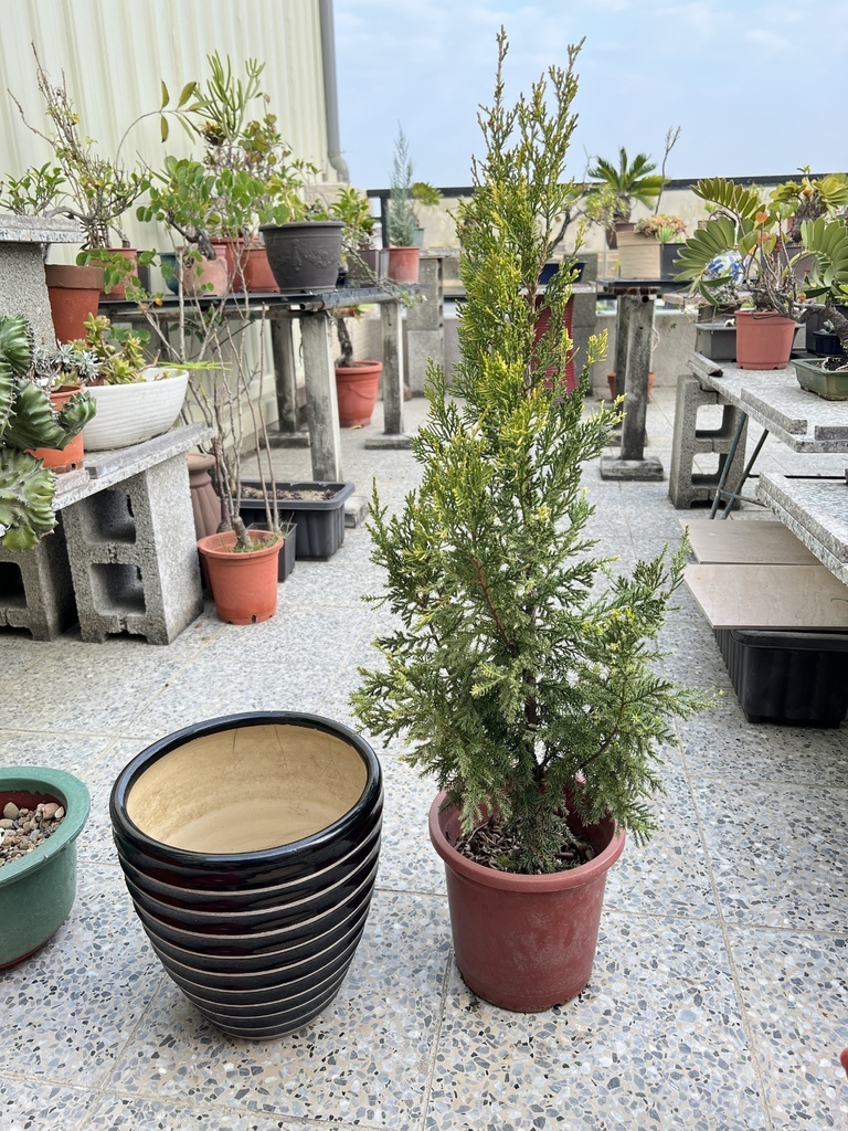 以下這盆"黃金千層龍柏",是去年(2023年)12/23購入的,買回來當我們家"聖誕樹",前一棵聖誕樹敵不過我家頂樓的強風及夏天的酷熱,去年夏天就枯萎了,於是在耶誕節前一天,買了這盆"黃金千層龍柏"來當"聖誕樹",當然~耶誕夜那晚有裝飾及掛滿耶誔飾品,還滿好看的,只是小棵了一點,於是經過2個多月後,把它移入大一點的盆器,期待它長高~長大一點,做一棵稱職的"聖誕樹"。